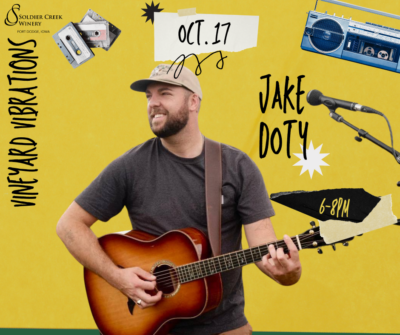 Vineyard Vibrations takes center stage at Soldier Creek Winery on October 17, from 6 to 8 PM featuring Jake Doty.